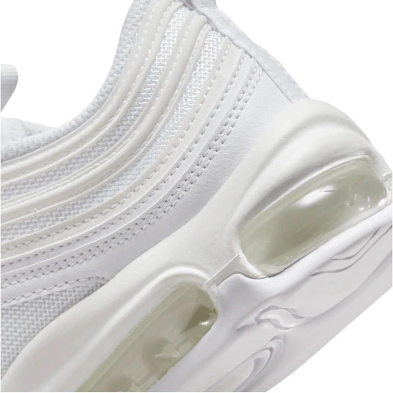 Push your style full speed ahead in the Nike Air Max 97, featuring the OG’s ripple design that was inspired by Japanese bullet trains. Taking the revolutionary full-length Nike Air unit that shook up the running world and adding fresh details, it lets you ride in first-class comfort.
